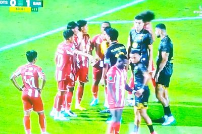 Tak cuma itu. Kartu merah pun dilayangkan wasit kepada pemain Deltras, Wisal El Burji di babak kedua. Maka, kedua tim sama sama bermain dengan 10 pemain pada duel ketat dan sengit, hingga durasi pertandingan pun berakhir 2 x 45+11 untuk kemenangan anak anak Barito.